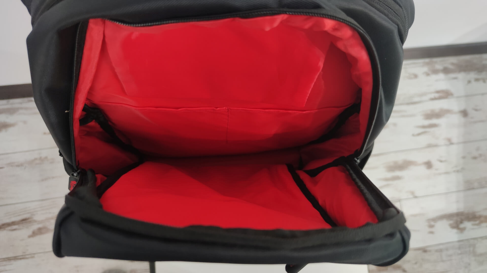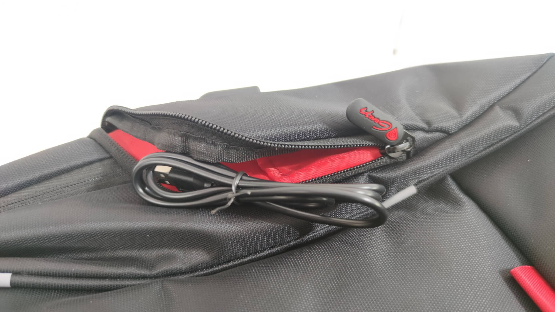 Това, което ни направи доста силно впечатление е, че външният вид на раницата е доста обран, а съчетанието между черният цвят на текстила отвън и червения цвят на отделенията отвътре прави раницата подходяща както за бизнес ориентирани, така и за гейминг потребители.
