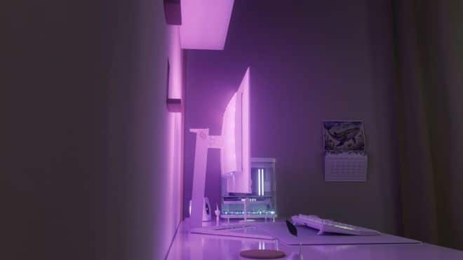 Подобрената с AI Ambiglow функция представлява технология за подсветка на заобикалящата зона, която използва RGB светодиоди на гърба на монитора. Те могат да бъдат конфигурирани да следват звука или видеото по време на игра или гледане на мултимедийно съдържание. AI-подобрената Ambiglow на Philips Evnia 27M2N5201P анализира картината на екрана и настройва цветовете и яркостта в реално време като така разширява сцената извън панела по посока на заобикалящото пространство.